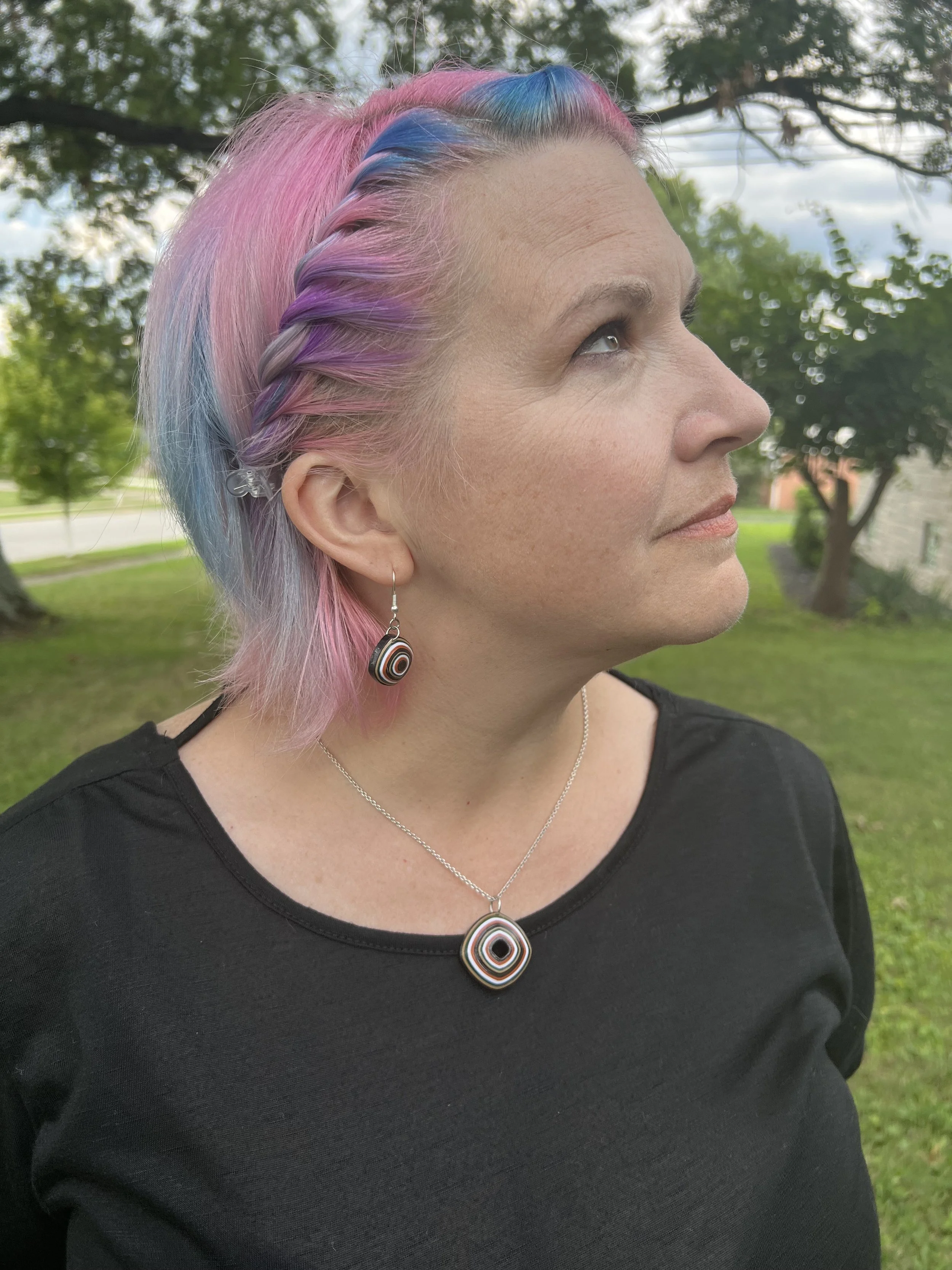 She got all of her creativity from me. I’ve been quilling for about a decade, mostly just for fun, until Kia started her polymer clay jewelry business. I was helping out with the markets for a while before asking her if I could put a few of my own items up for sale. Most of them sold at the first market and so I made more. Now, a year later, we’re equal partners and I’m having so much fun! I hope you enjoy our jewelry as much as we love making it for you!